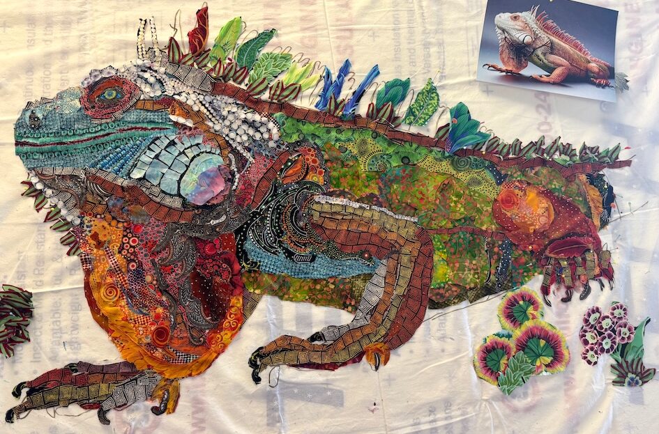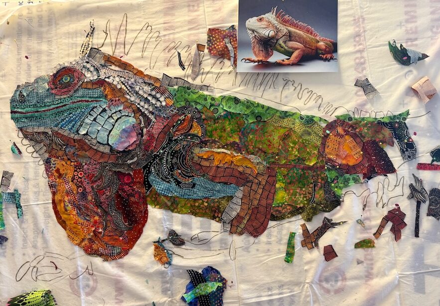 In combination with last week’s post, these two posts not only close out the Dog Days of 2025, they introduce you to my latest class and the fantastic and fanciful fabric collage work that was created by this group of very talented women.