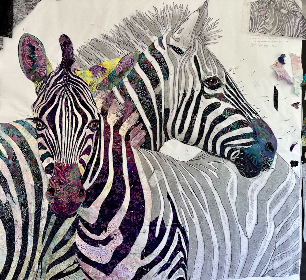 See last Saturday’s blog post for more amazing fabric collage art by my spectacular students in—Fabric Collage (Not) On the Road: June 2025 Live Online Class Part 1. Be sure to check it out!