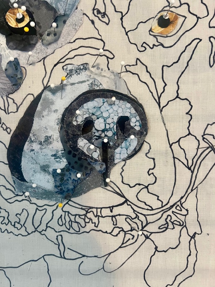 He’s still a work in progress but all those pink fabrics are are glorious to play with and I’m looking forward to completing the collage and hanging him up in my home.