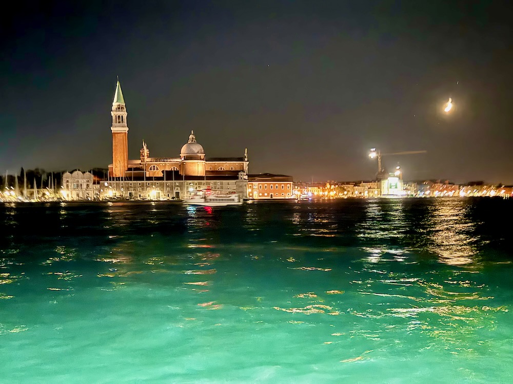… and caught an evening vaperetto (water bus) to see Venice and San Marco Square from the water at night.