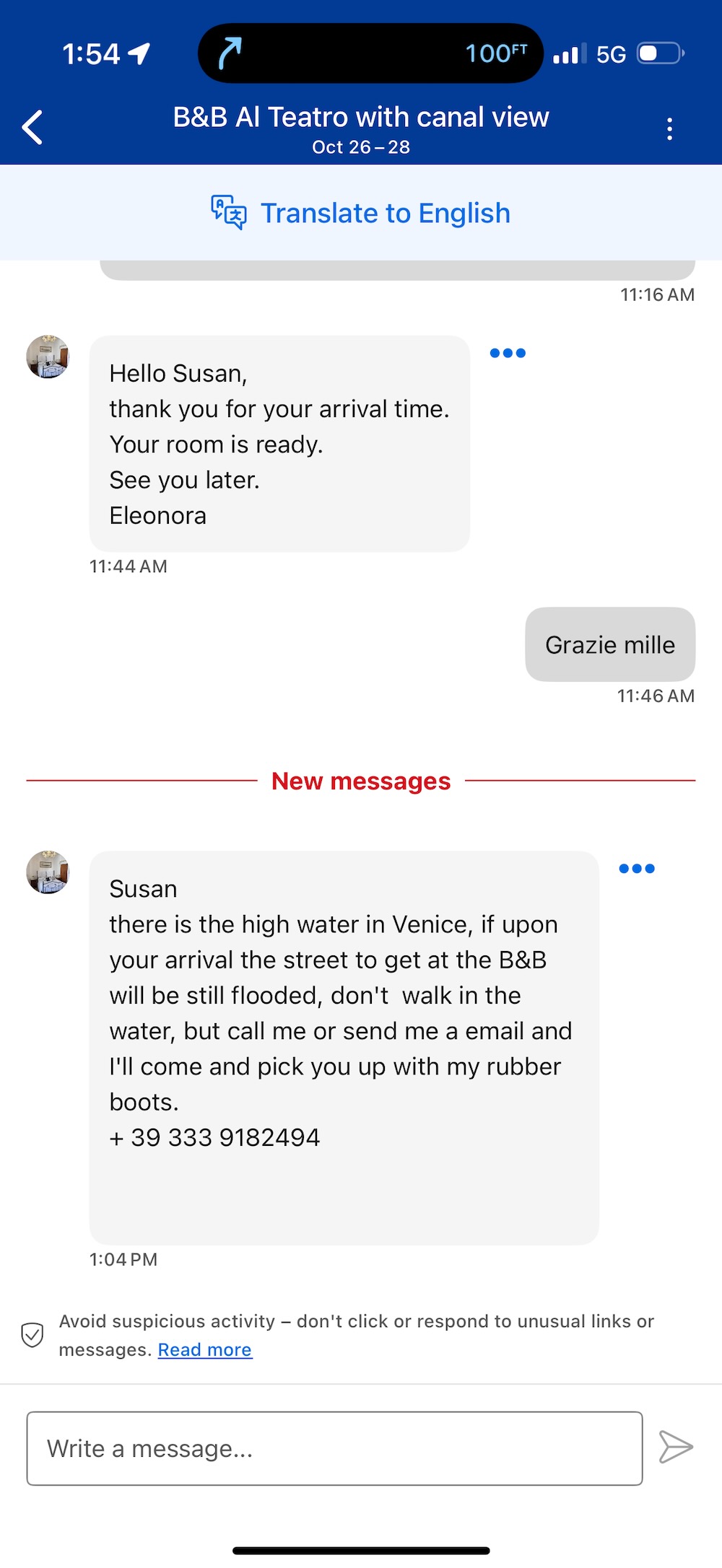 You know you’re in Venice (Venezia) when you receive the following message from your B&B: