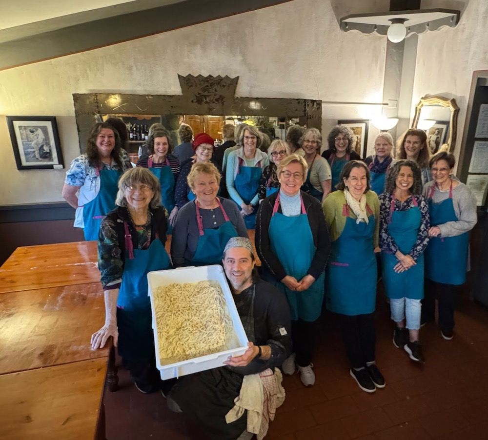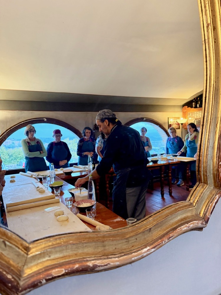 On Day Four, we wrapped up class at 4pm and had a nice walk through town to meet Christian, a bistro owner friend of Pamela’s. He had a Prosecco toast, a pasta-making class, and dinner ready for us. Salute!