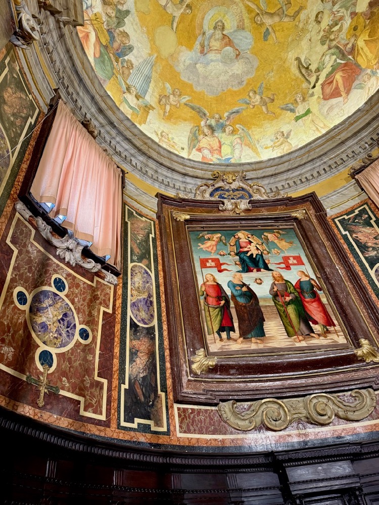 So, this will be the first “Bites of Inspiration” post, a new blog category. The focus of this post will be the Renaissance art displayed at Città della Pieve Cathedral, an experience I never would have had if not for teaching a Strada Toscana Fabric Collage class around the corner from the cathedral.