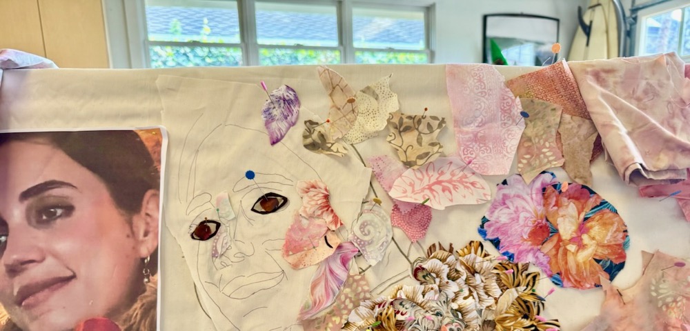 Before class I also like to touch base on fabrics—choosing the colors and designs that will work best for the “story” of the chosen subject. Then, we’ve done as much as we can to get a good start in class.